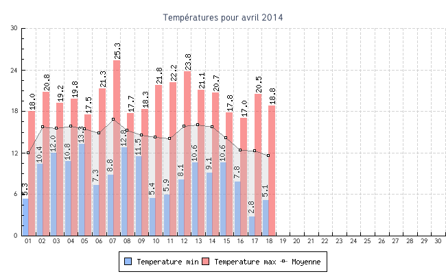 | 01 | 5.3 °C | 18.0 °C | 12.0 °C | 3.0 km/h (27.4 km/h) | SO |