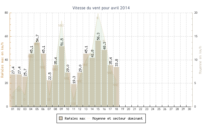 | 05 | 13.3 °C | 17.5 °C | 15.4 °C | 14.3 km/h (54.7 km/h) | NNO |
